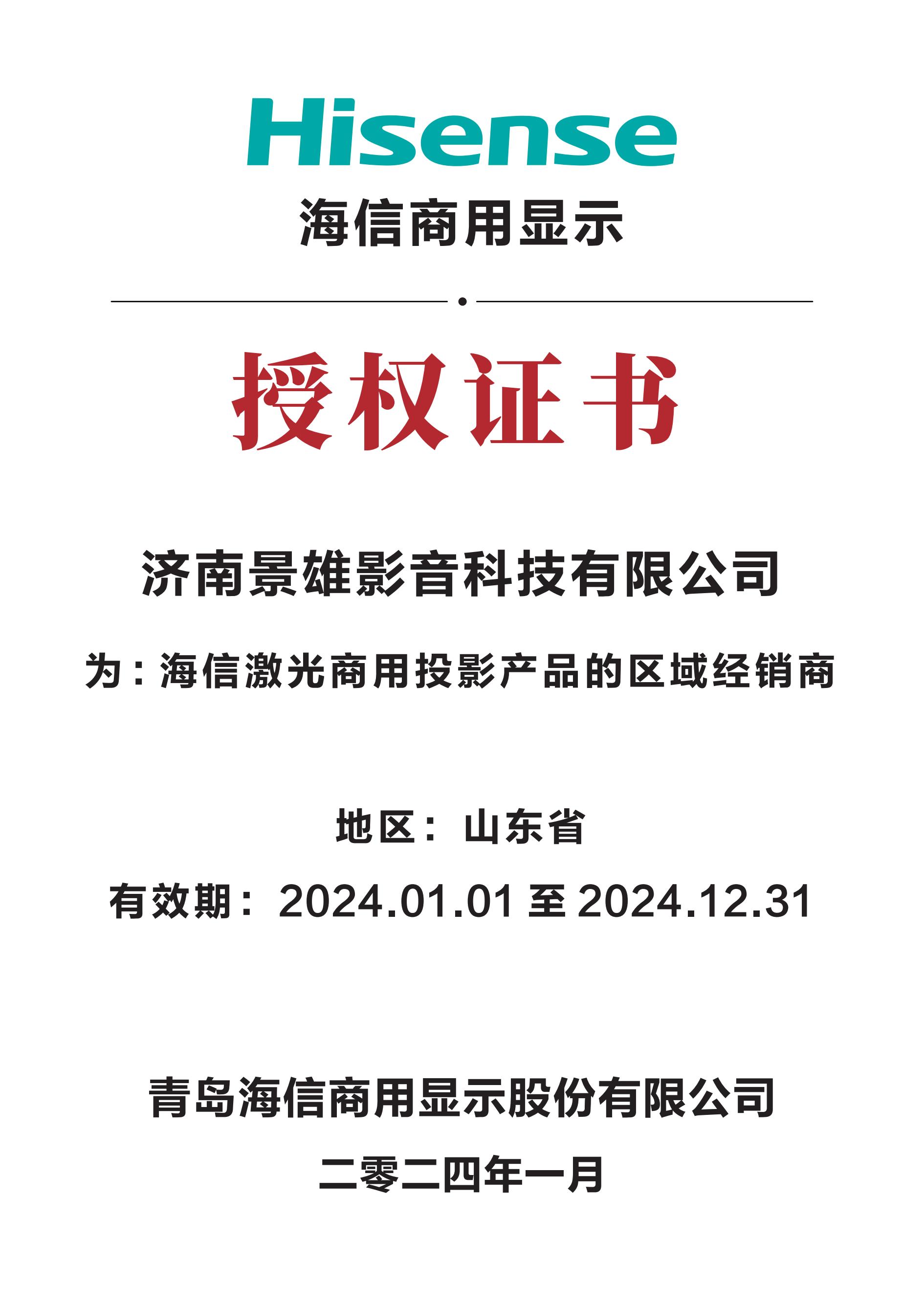 濟(jì)南景雄影音科技有限公司是山東省的知名IT企業(yè)。 公司成立以來(lái)一直致力于多媒體投影系統(tǒng)及其周邊器材的營(yíng)銷服務(wù)。同時(shí)承接多媒體教室、專業(yè)(3D)家庭影院系統(tǒng)方案、音視頻會(huì)議系統(tǒng)、大屏幕投影拼接等工程的方案規(guī)劃、產(chǎn)品銷售、安裝調(diào)試、保修及維修業(yè)務(wù)。
